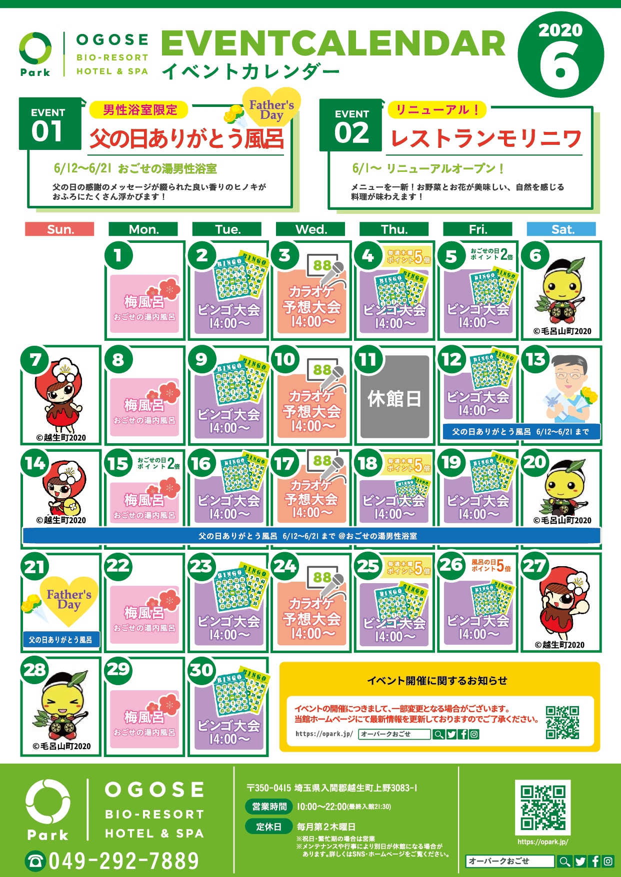 TOPICS 6月イベントカレンダーのお知らせ 2020.06.04 お知らせ −−−−−−−−−−−−−−−−−−−− BIO-RESORT HOTEL&SPA O Park OGOSE ビオリゾート ホテル&スパ オーパークおごせ 埼玉県入間郡越生町上野3083-1 https://dev.color-coordination.com/opark/ −−−−−−−−−−−−−−−−−−−−