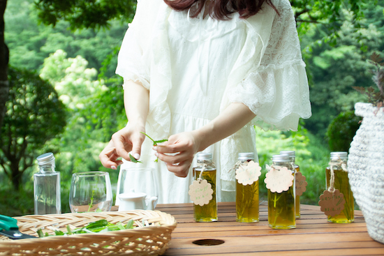 ・自家栽培ハーブを摘みたてで楽しむ「手作りハーブオイル体験」