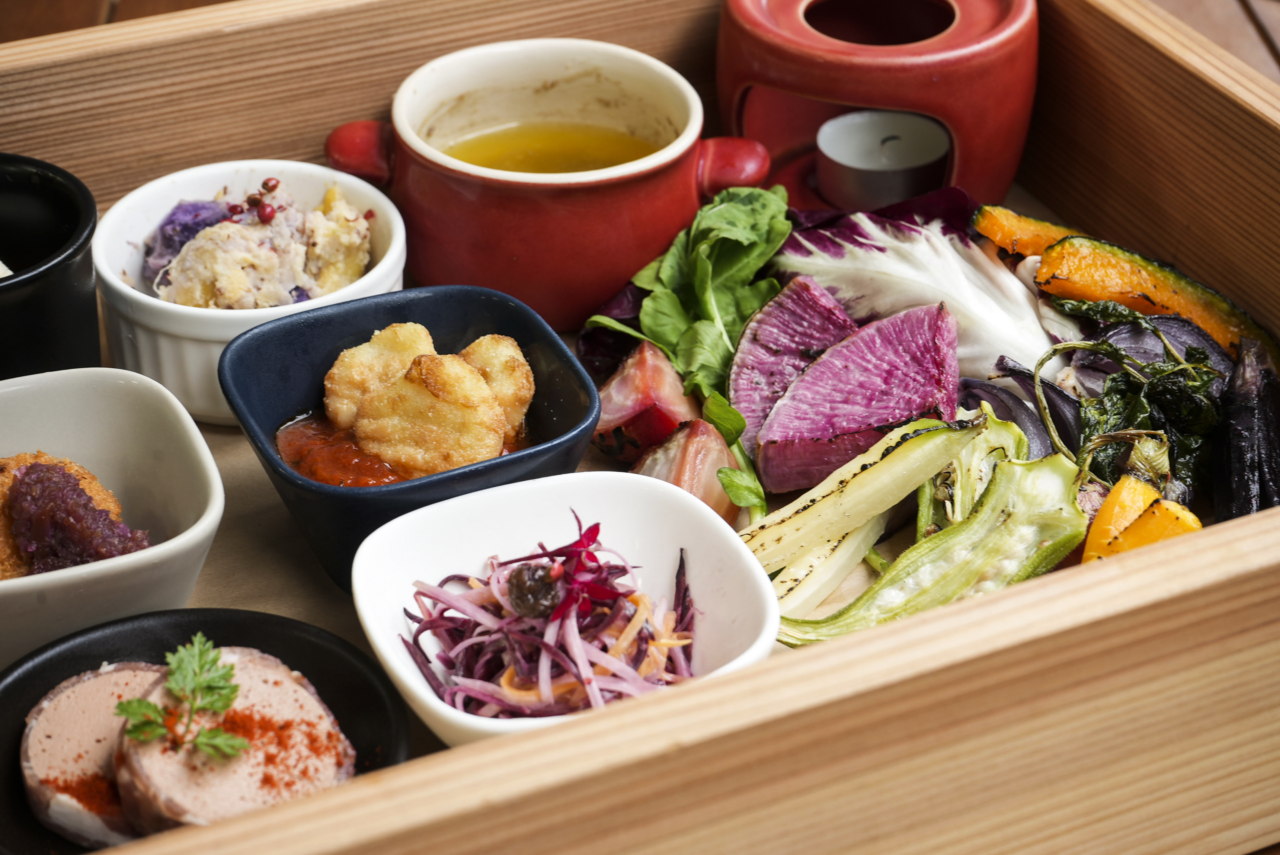 お肉のパテなどのシャルキュトリーとお野菜の前菜を盛り合わせた一品です。