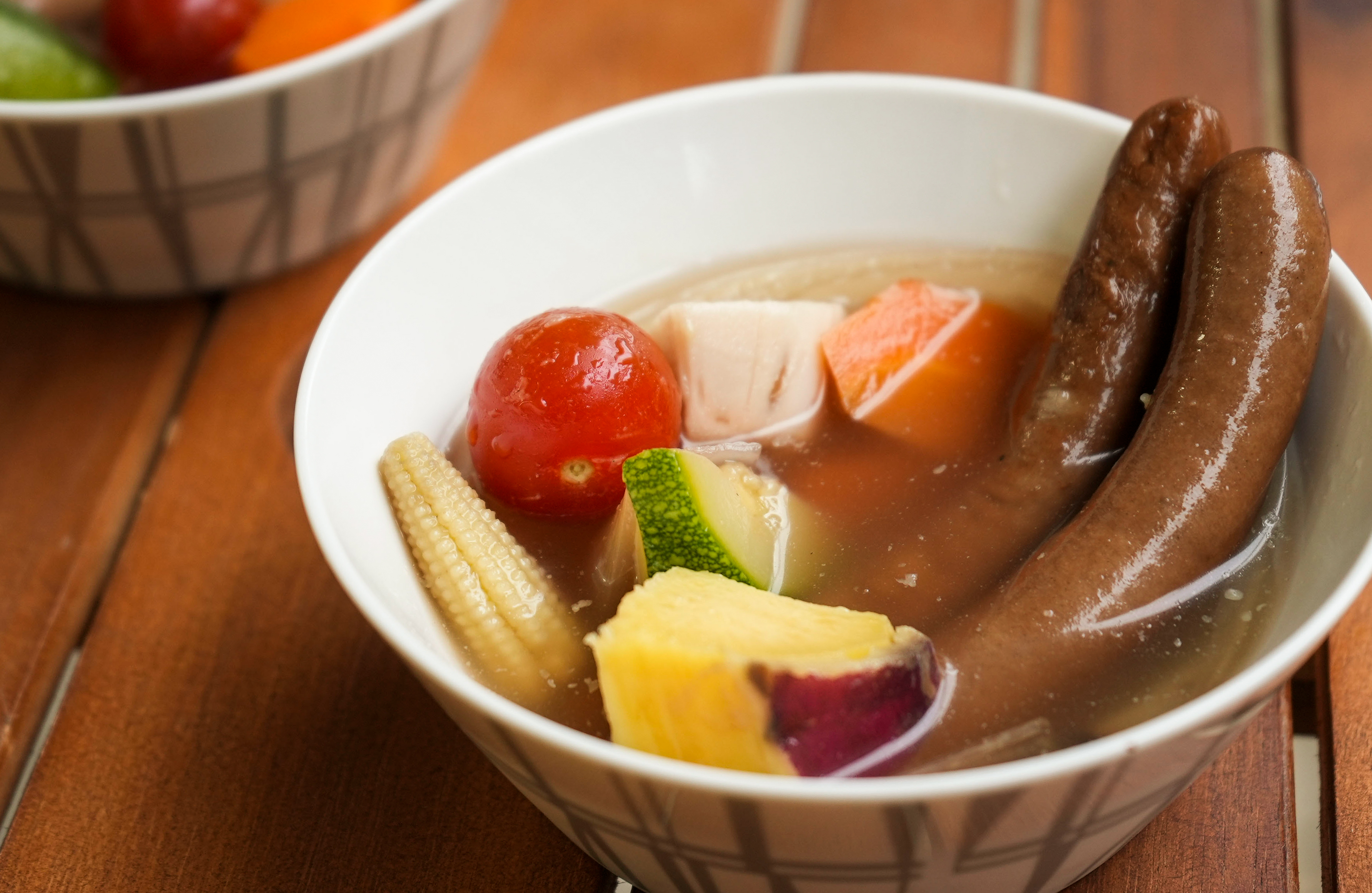 [スープ]ジビエのソーセージ入りトマトクリームポトフ