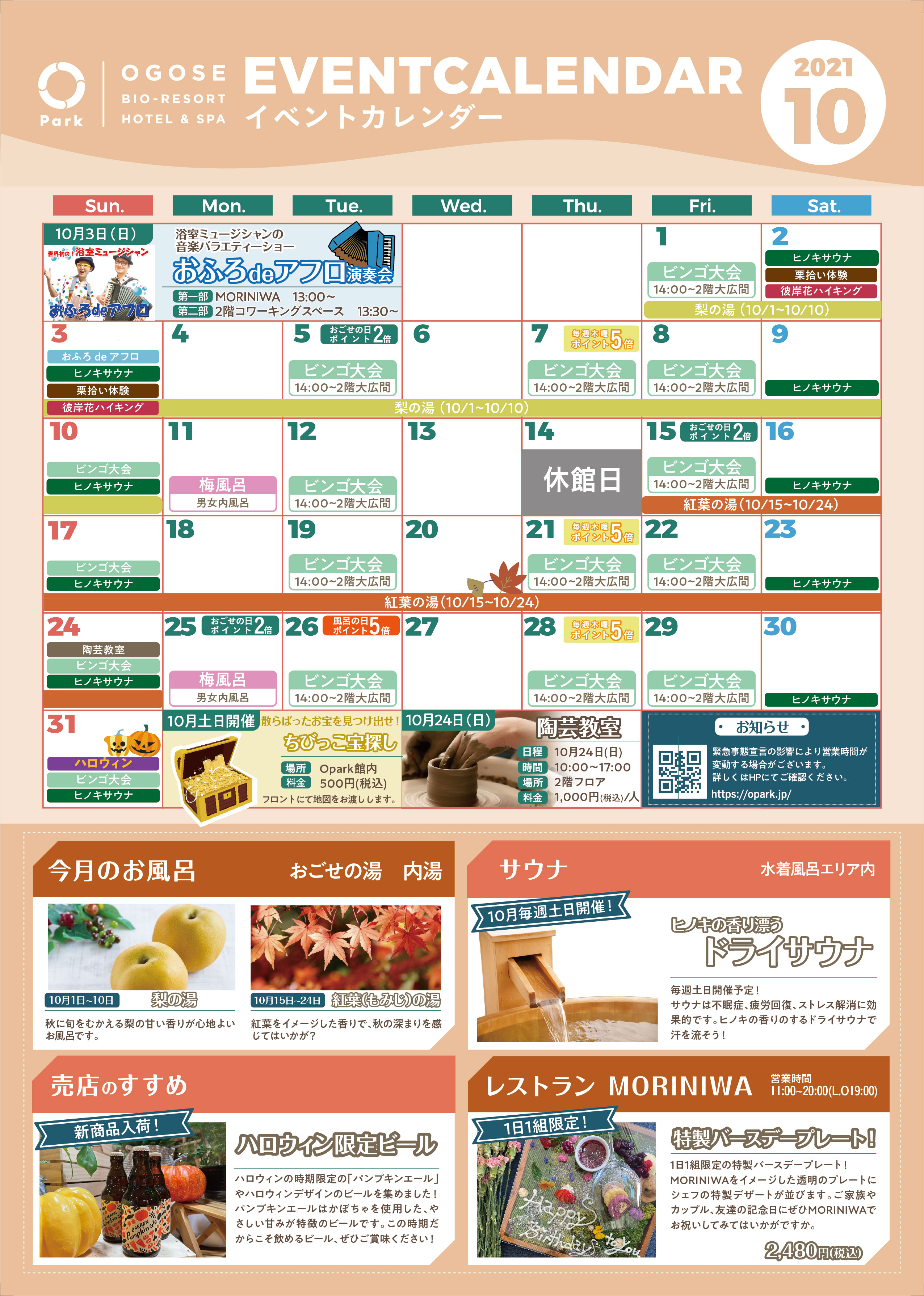 2021年10月イベントカレンダーのお知らせ