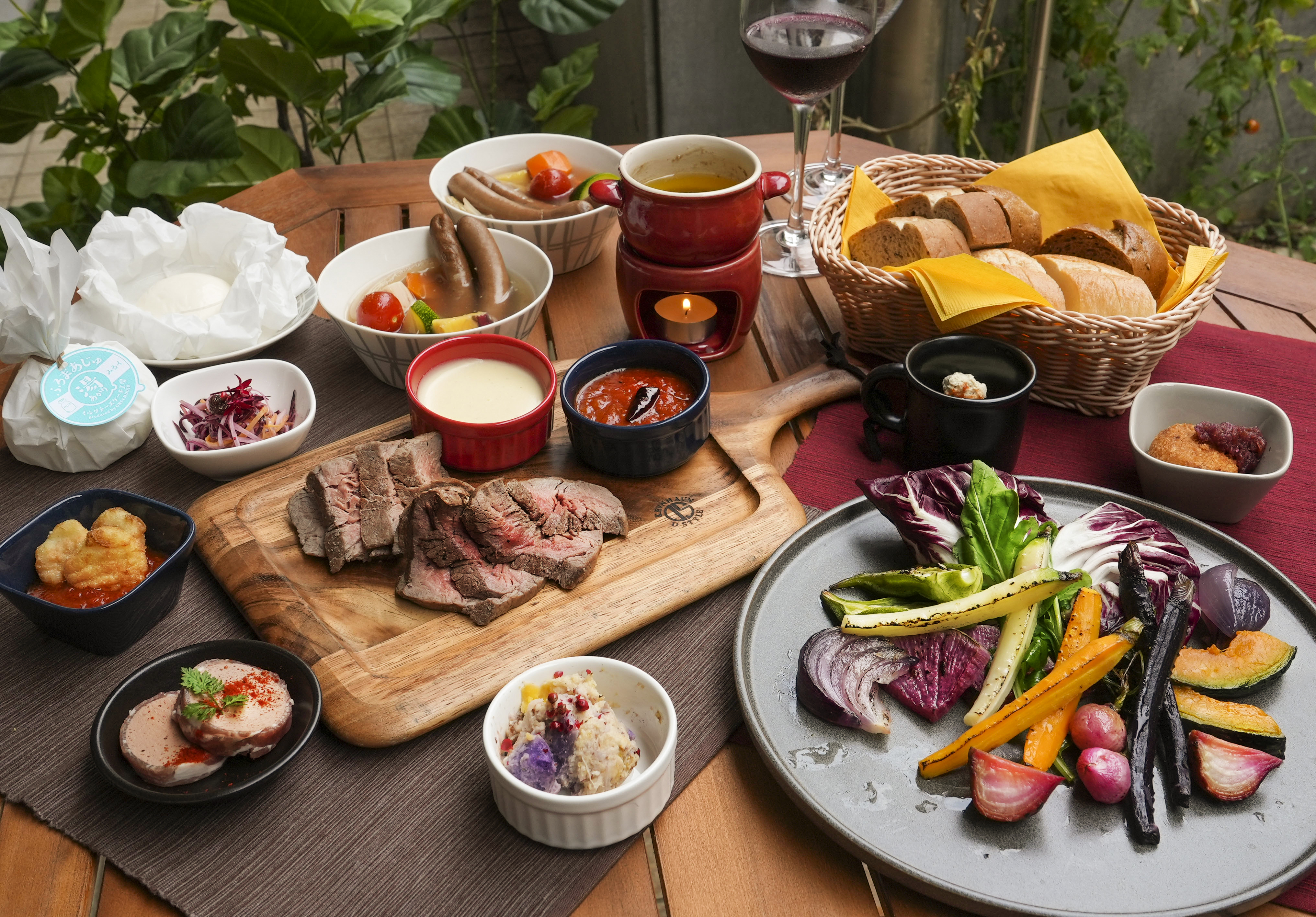[レストランテラスで食べる埼玉県産野菜を楽しむグランピングディナー]