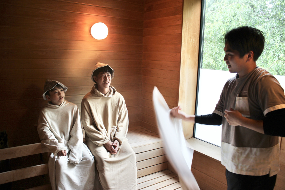アウフグースとはドイツ発祥のサウナ室で行う、タオルを用いたサウナパフォーマンス。
