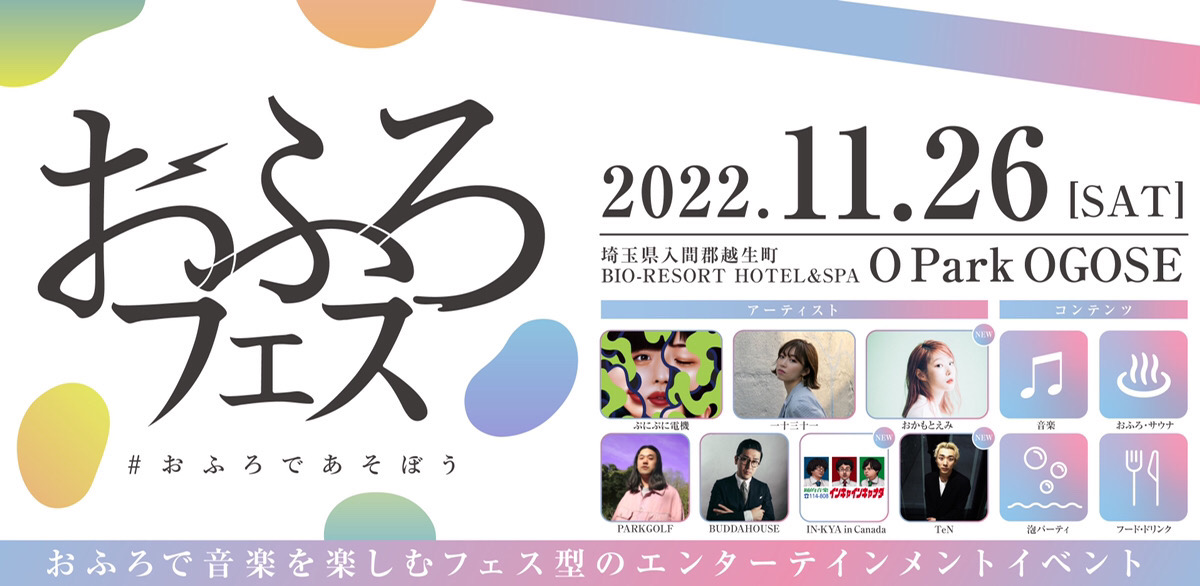 11月26日、オーパークおごせにて音楽・トーク・フードなどさまざまなかたちで楽しめるイベント「おふろフェス」を開催いたします。