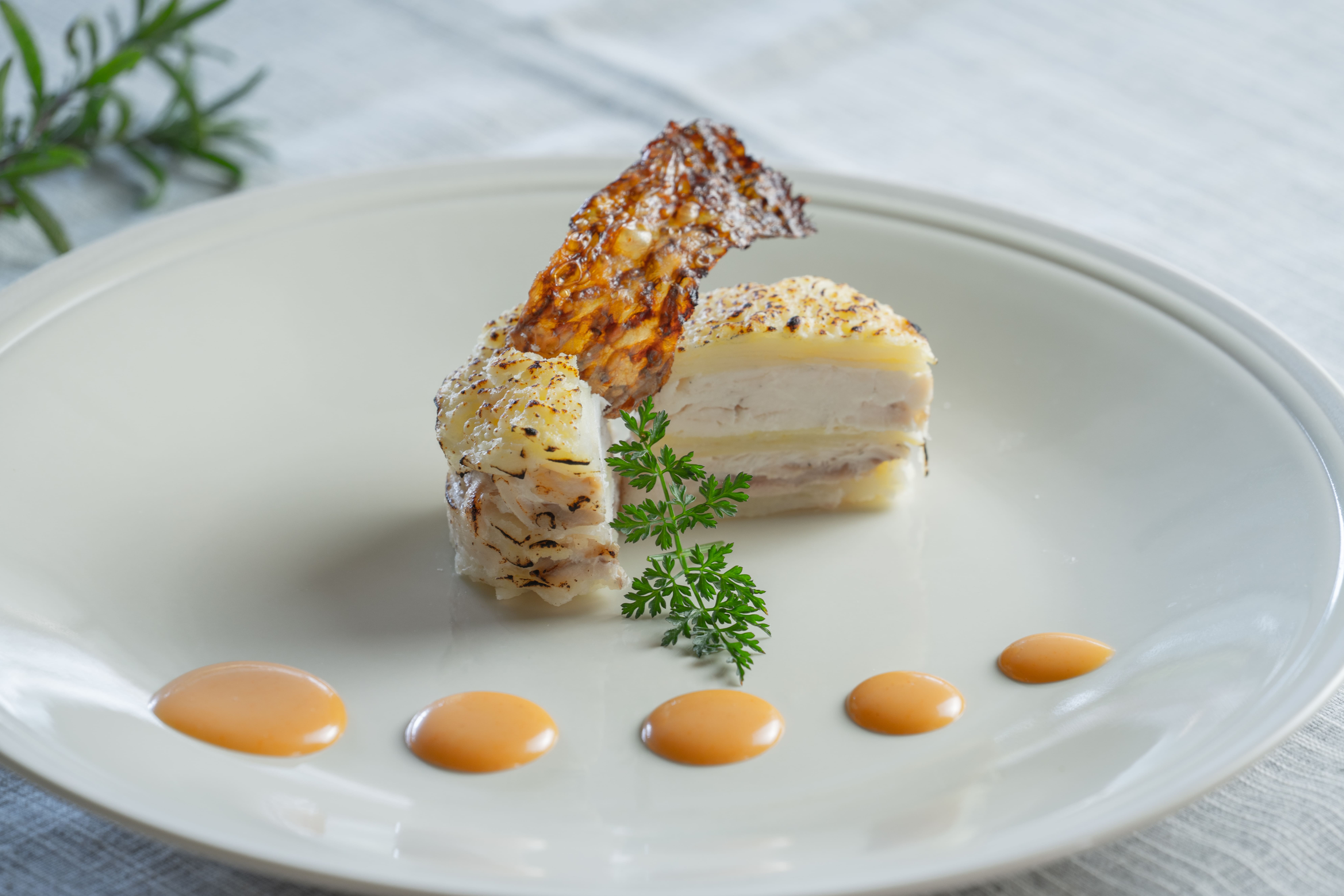 ―真鯛とじゃがいもをミルフィーユのように重ねてグリルをいたしました。
