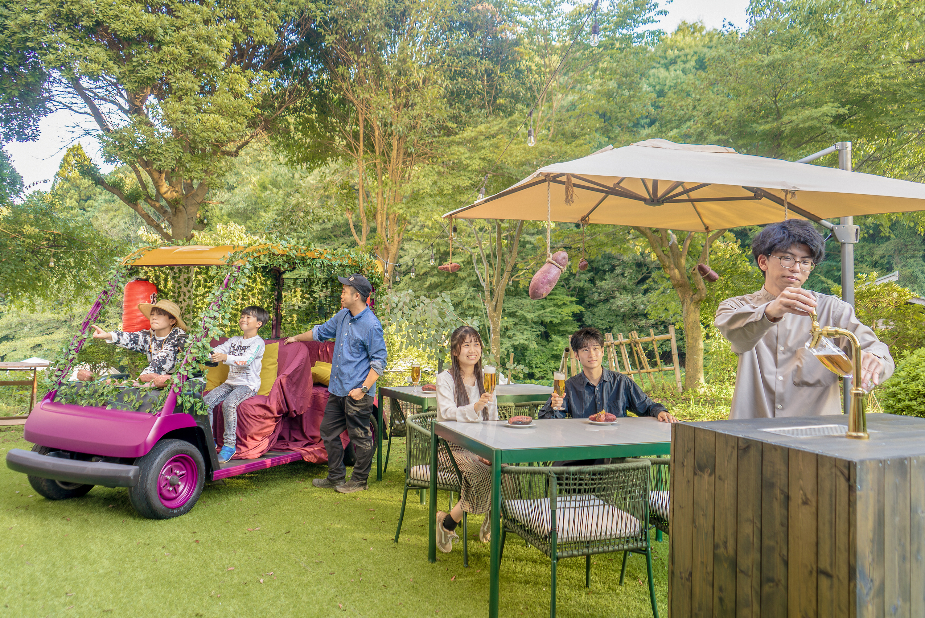 埼玉発のビールブランド「COEDO」が製造・販売している、川越のさつまいもを使用したクラフトビールや、焼きたてホクホクの焼き芋、またおいも尽くしのフォトスポット「OIMOカート」をご提供。