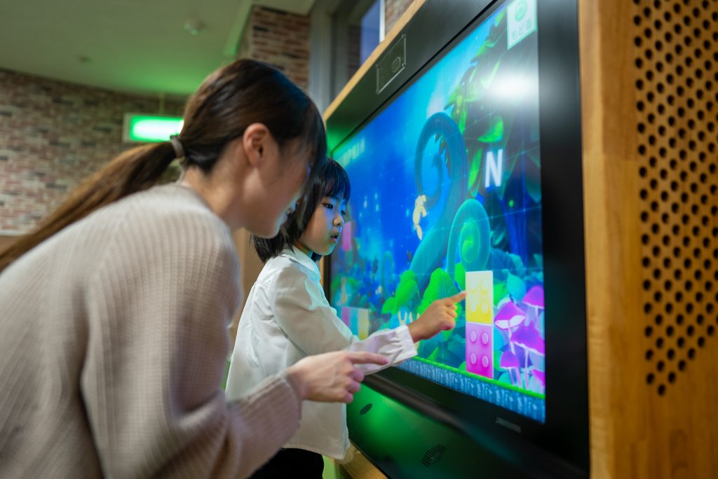 子どもたちの探求心をくすぐる知育系アトラクション系 14 タイプを 1 台のサイネージで一気に楽しむ!