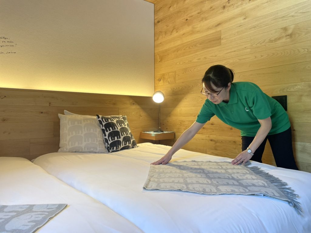 グランピングの客室清掃スタッフ