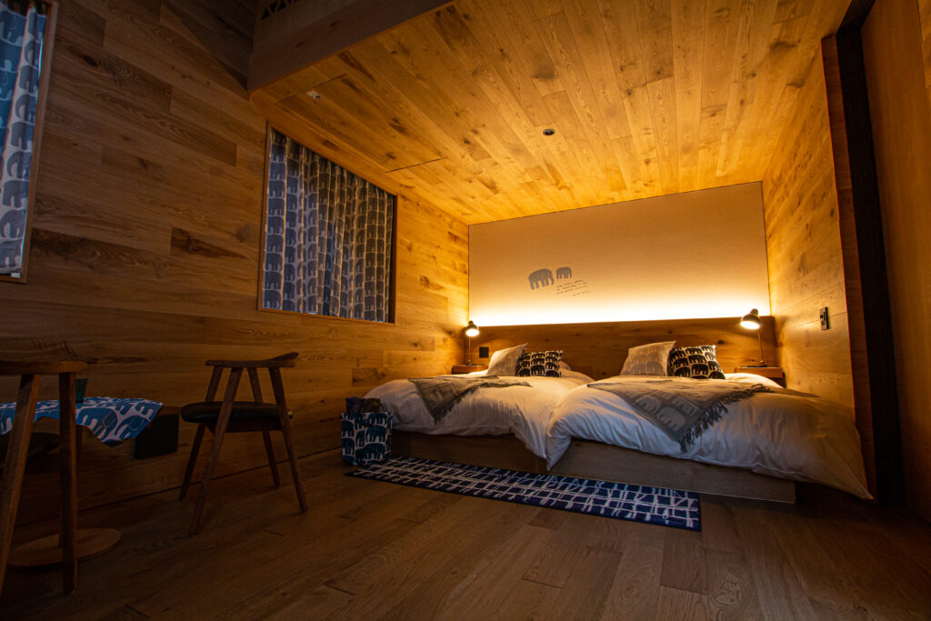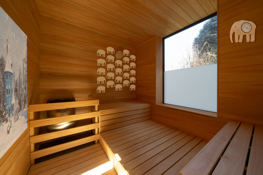 Finlayson(フィンレイソン)のパターンの中でも国内で高い人気を誇るエレファンティのデザインを形どった木材で、サウナ室壁面を装飾。コラボレートルームならではのサウナ室として、より魅力的な空間をご用意します。