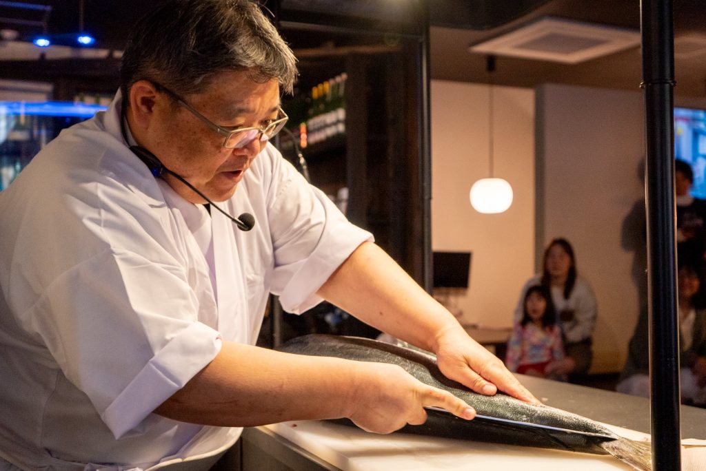 おふろ café 白寿の湯で開催している「さばき会」を出張開催。魚種のご要望も承ります。捌いたお魚はそ