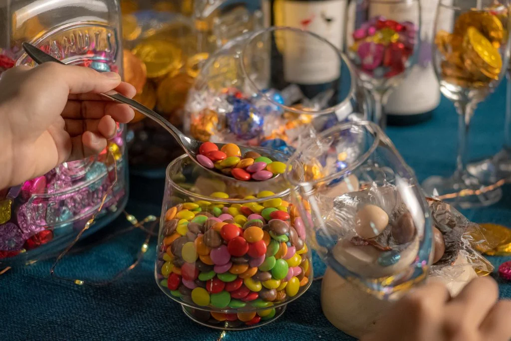 カラフルなお菓子とポップコーンを好きなだけカップに詰めよう♪