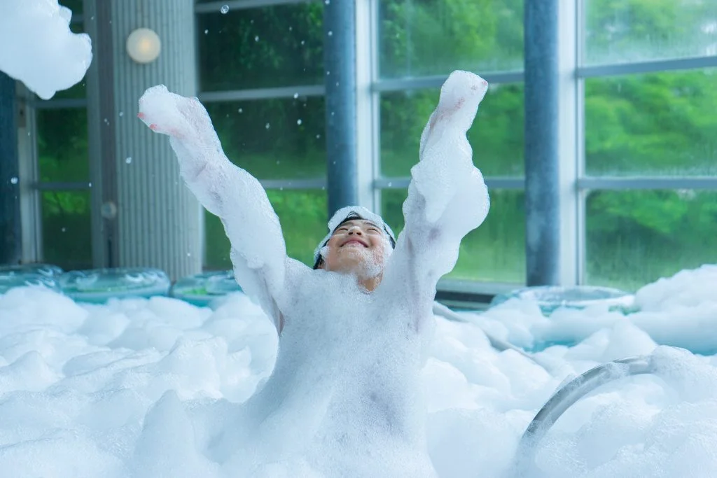 迫力満点の泡が空からふわふわ!水着で思いっきりはしゃごう!