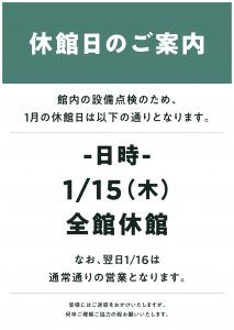 TOPICS 【ご案内】2026年1月休館日のお知らせ