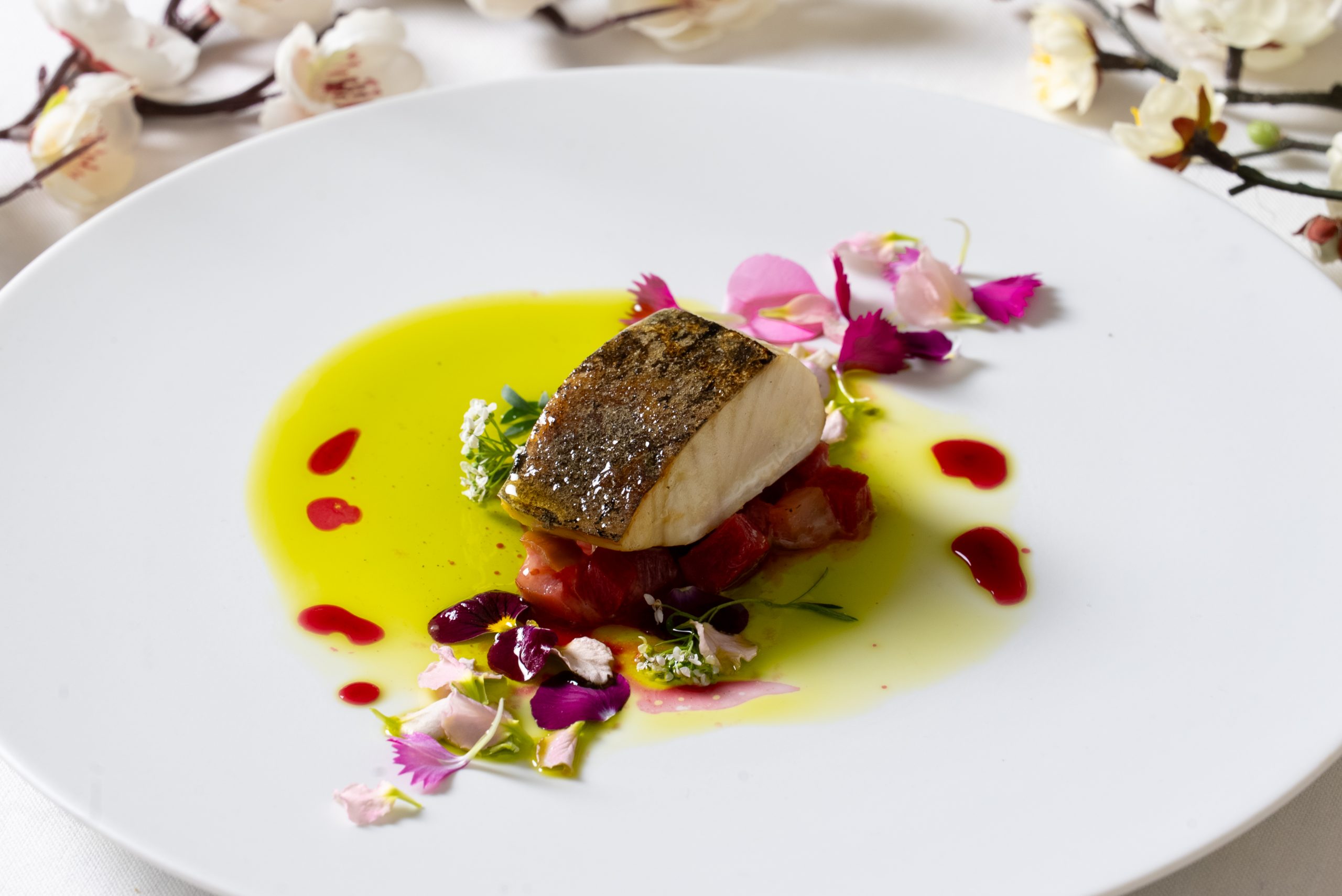 鰆のポワレ 梅ソース・梅酢・春菊オイル