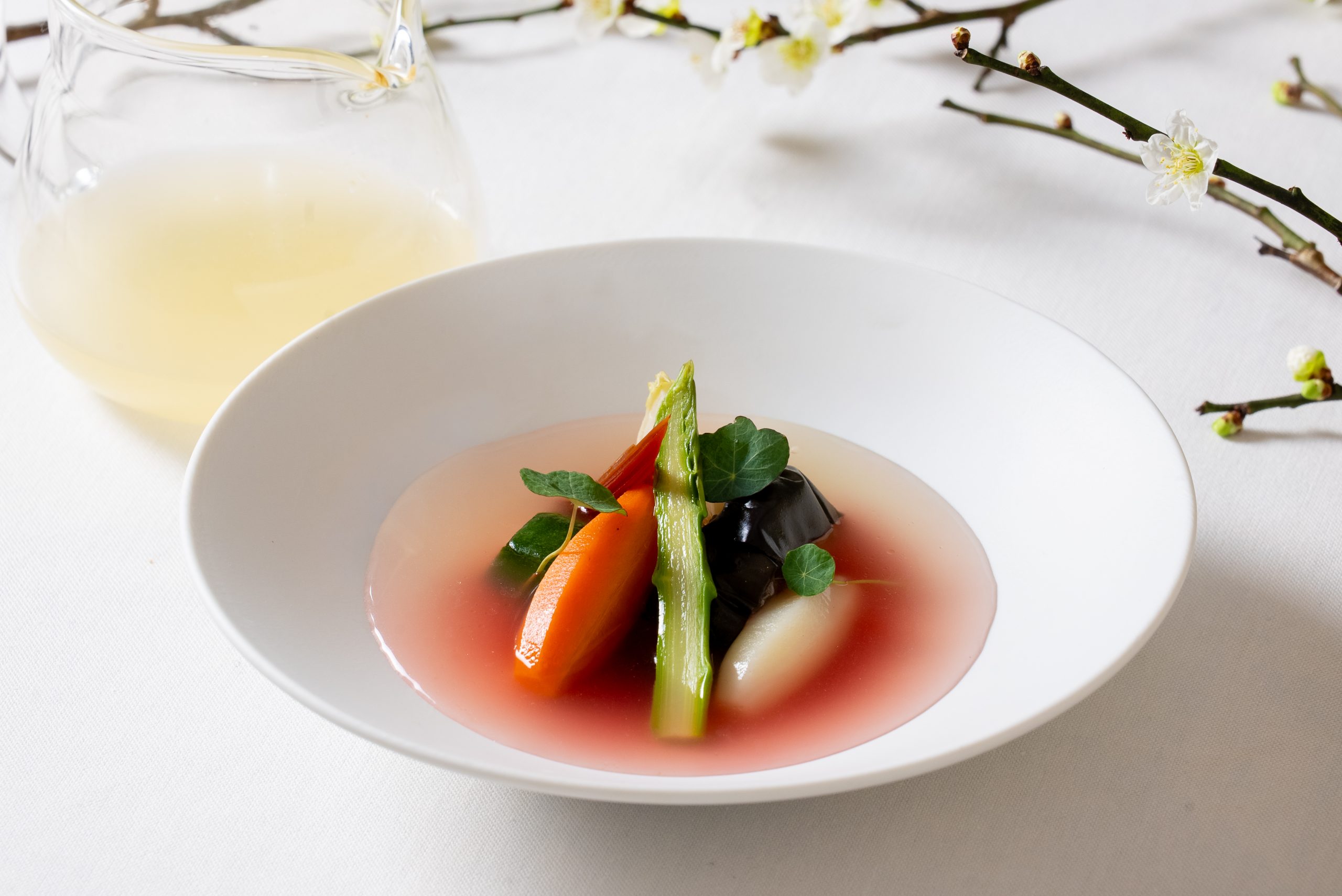 旬食材と梅を巧みに組み合わせた、2カ月限定の料理長特製フルコース。“梅の1年の移ろい”をテーマに、コース全体で梅の多彩な表情を感じられる構成となっています。