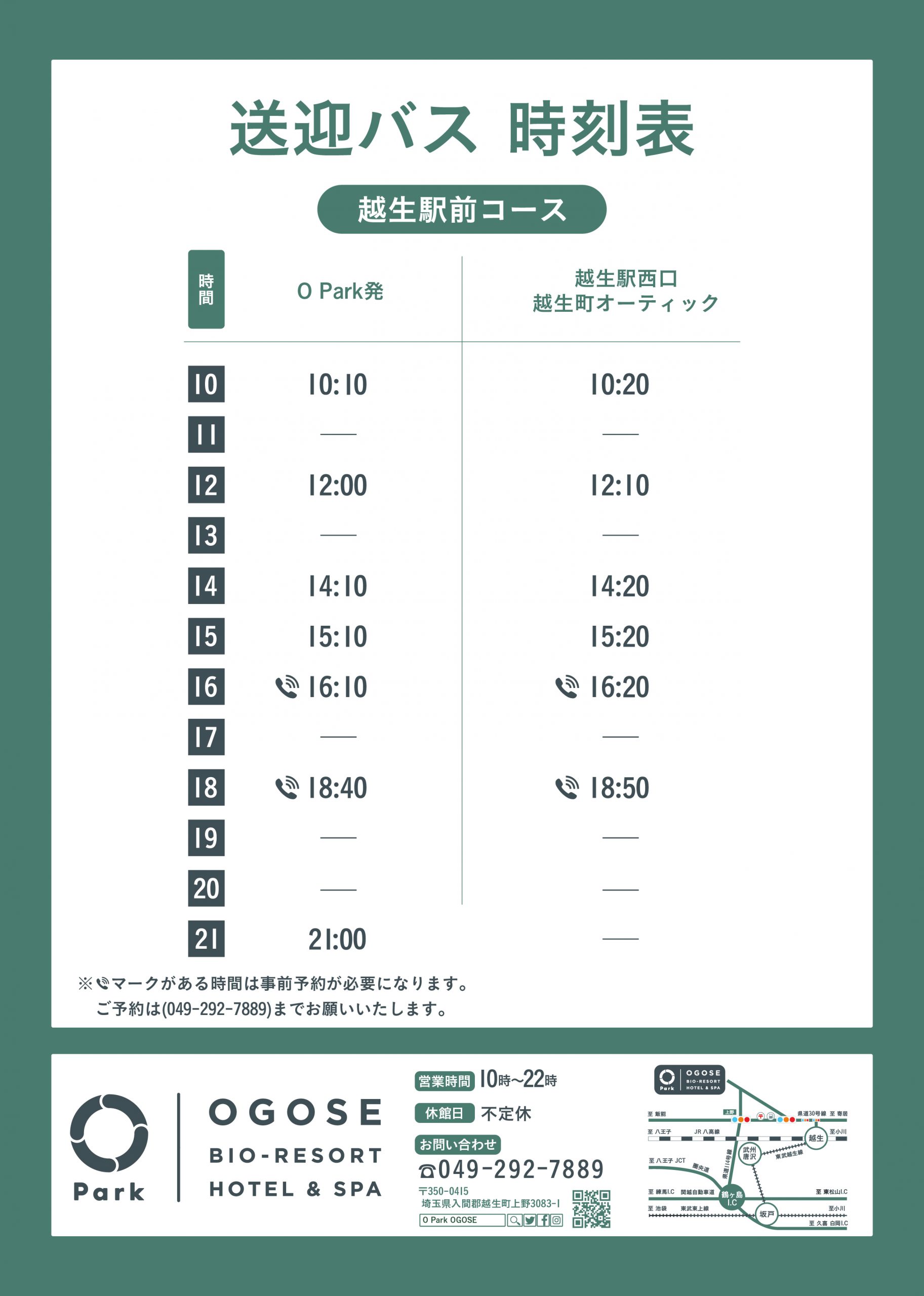 追加時間:21時オーパーク発越生行(その他のお時間に変更はございません)