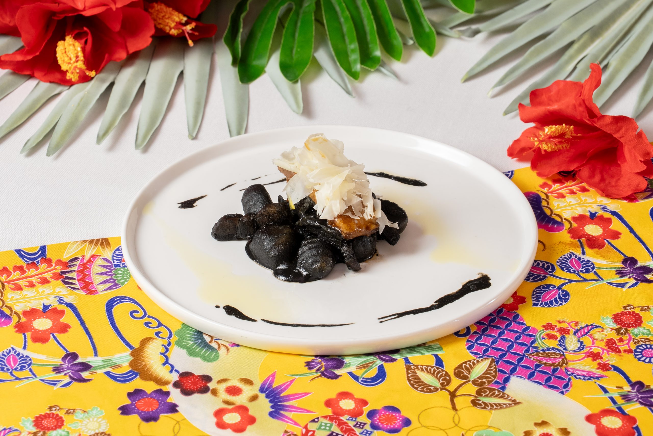 石垣のイカ墨と合わせて、海と大地の力強さを一皿に凝縮させました。