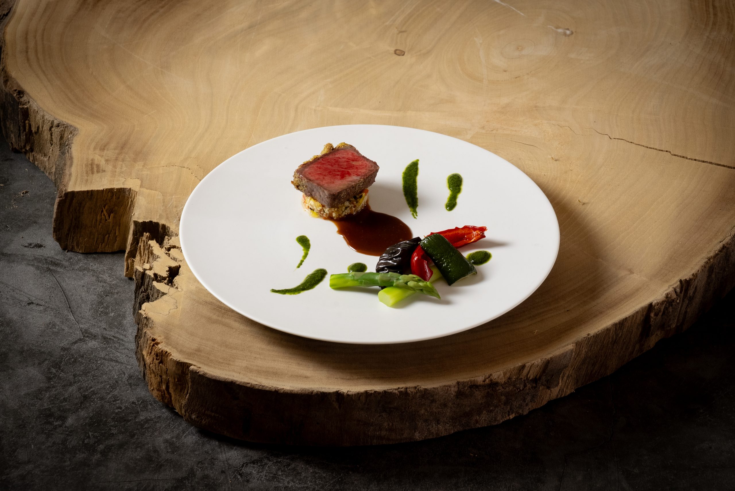 南仏をイメージした一皿。フレンチの定番料理をモダンに仕上げました。脂身が程よく入った深谷牛のランプ肉を使用しています。